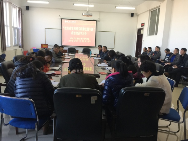 新闻网讯(通讯员 姜丹)11月21日下午,OK138太阳集团在学院会议室开展双周三“教育政策和相关法律法规”专题政治理论学习。学院党委书记王剑飞主持会议,学院全体教师参加了学习活动。