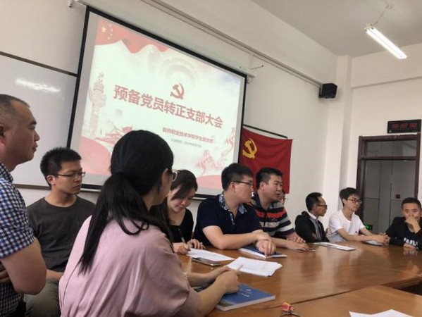 新闻网讯(通讯员 张鑫瑜 梅林)为讨论王成光等18名同志的转正问题,软件职业技术学院于2019年6月19日在应用楼413举行预备党员转正支部大会。由学生第二党支部书记霍阳老师主持本次大会。