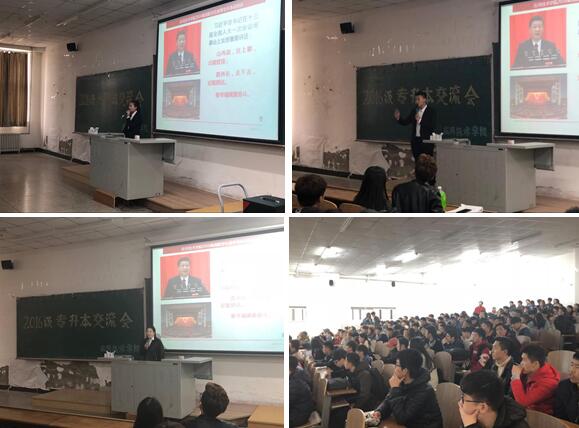 【通讯员 李帅】为了加强OK138太阳集团高职学生对普通高校全日制专升本考试的了解,明确学习方向,增强学习动力,3月23日下午,我院在北湖校区西阶101教室组织召开了2016级“专升本”交流会。