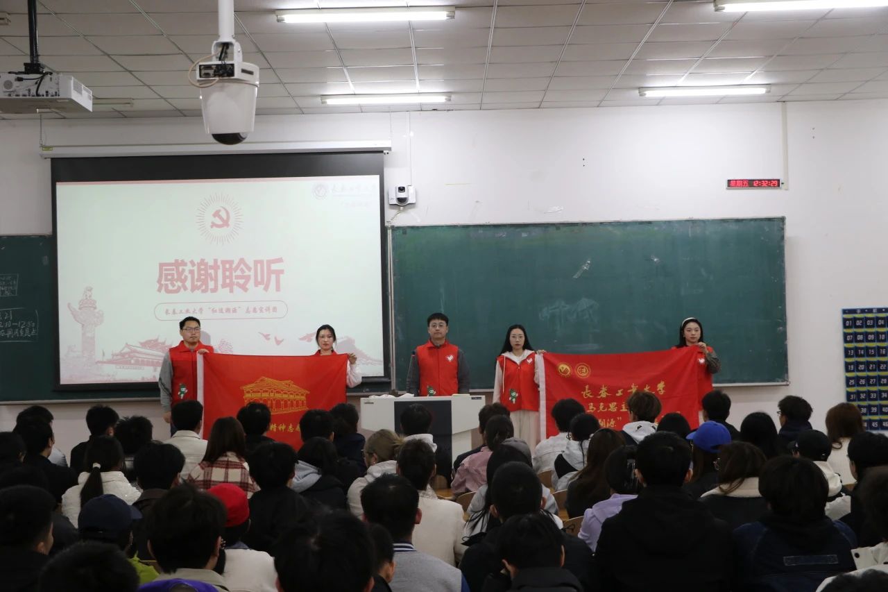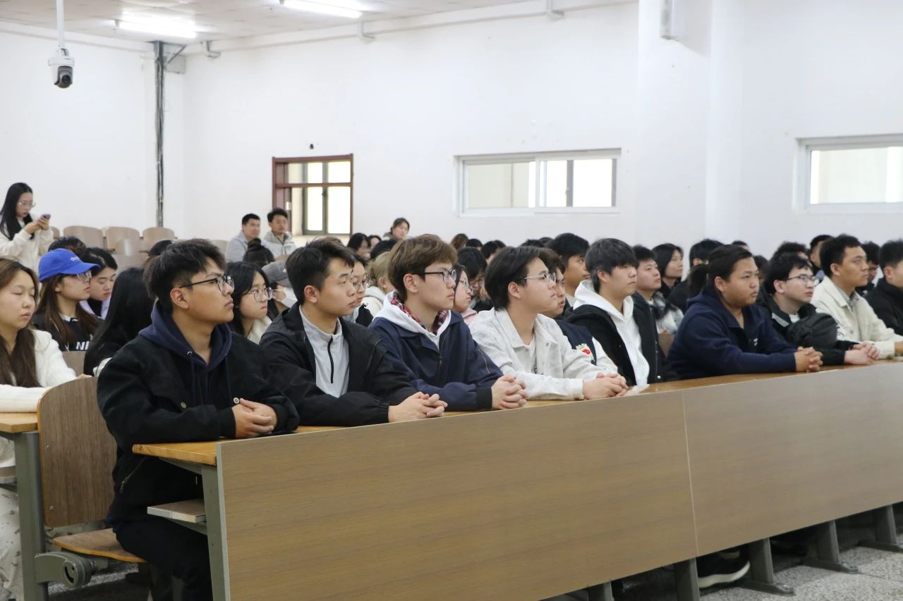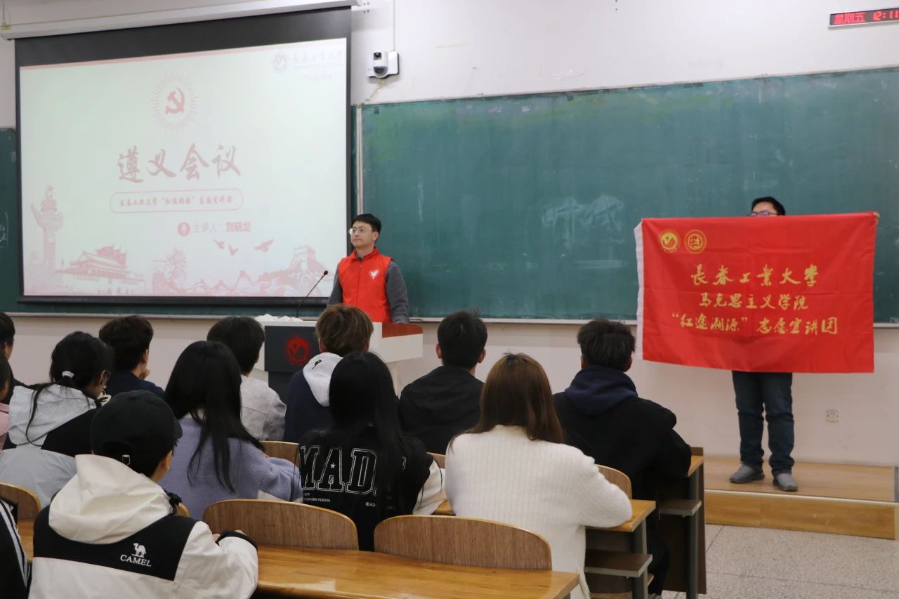 宣讲过程中,宣讲人刘晓龙借助珍贵的历史图片、详实的文献资料,生动地还原了遵义会议召开的历史背景,系统阐述了遵义会议对中国革命走向的决定性影响及其深远的历史意义。同时,刘晓龙紧密联系新时代青年的学习与生活实际,深入探讨如何在新时代传承和发扬遵义会议精神,让师生们仿若穿越时空,置身于1935年那个关乎党和红军前途命运的重大历史现场。