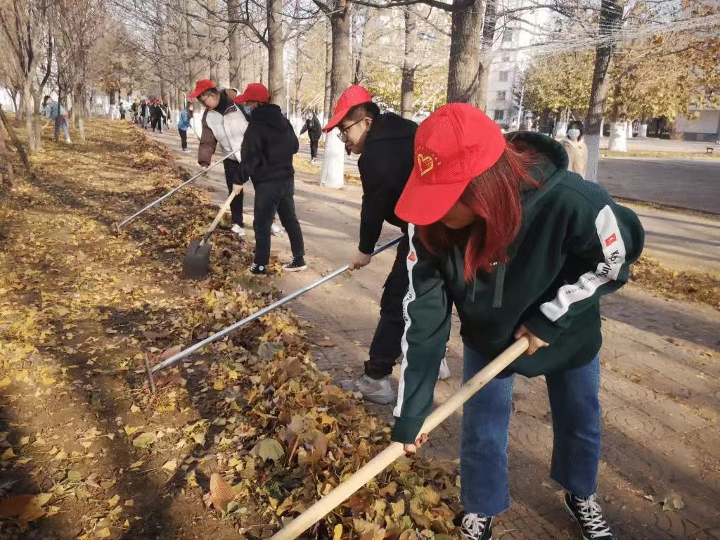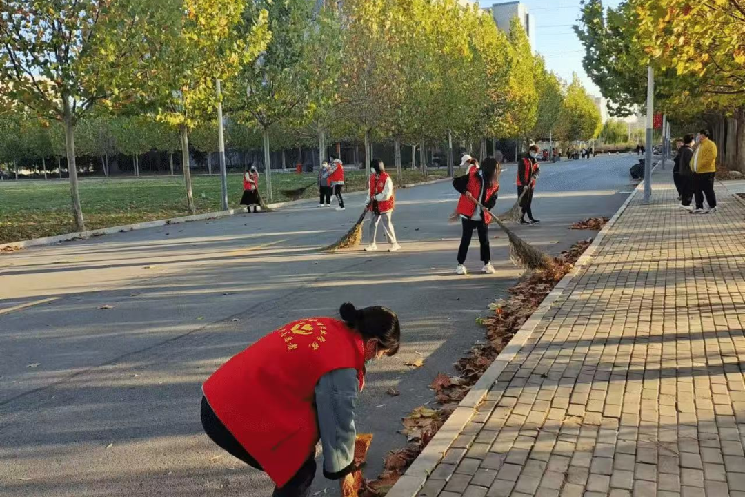 在活动中,志愿者们分工明确,有的负责清扫主干道,有的负责清理花坛和草坪。尽管秋风瑟瑟,落叶纷飞,但志愿者们热情高涨,干劲十足。他们用扫帚、簸箕等工具将落叶堆成堆,并统一运送到指定地点进行处理。