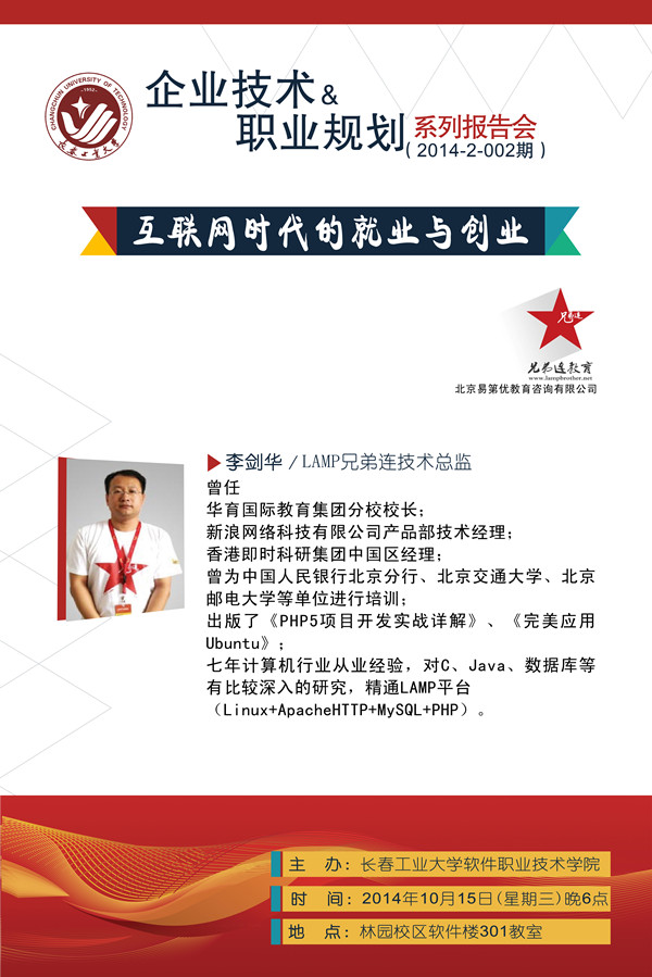 上一条:企业技术&职业规划系列报告会(2014-2-003期)------马剑威.