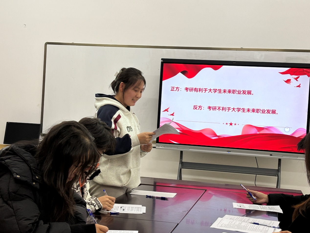 同学们踊跃组队,热情高涨。参赛队伍来自不同班级、不同专业,各有千秋。有的以思维敏捷、逻辑严谨见长;有的凭口才出众、表达感染力强独树一帜;有的靠团队默契、协作无间令人赞叹。赛前,各队精心筹备,广搜资料,模拟演练,雕琢论点论据,力求赛场之上尽展锋芒,绽放华彩。