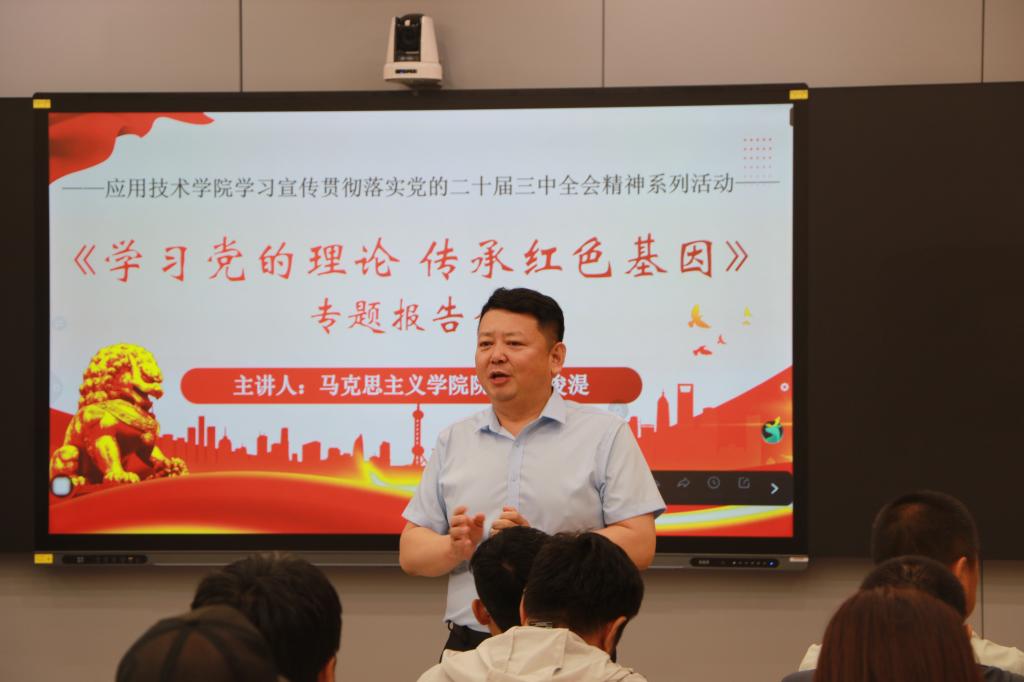 于浚湜教授的报告结合党的二十届三中全会报告内容,从“回应时代新任务”,“开辟理论新境界”,“书写人生新篇章”三个部分,全面涵盖了党的理论核心要点以及红色基因的深刻内涵,多维度的阐述了党的重要思想、方针政策及红色基因中所蕴含的革命传承和奋斗精神,报告紧密结合当前的时代背景,强调了在新时代学习党的理论和传承红色基因的重要意义。