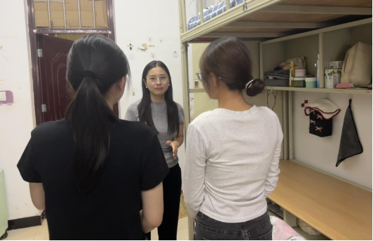 随着夜幕降临,一天的迎新工作圆满结束。各位新生辅导员来到学生宿舍给予同学们关心慰问。宿舍内不时传出的欢声笑语,使老师和同学们的距离越来越近,也让新生同学放下了一天的紧张和疲惫,短暂地忘却了思乡之情,对未来充满希望和畅想。