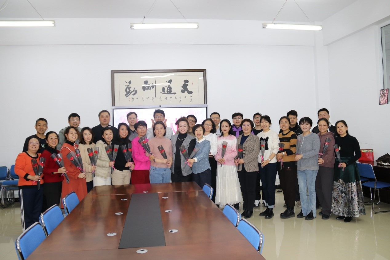 学院领导班子向全体女性师生致以最热烈的祝贺和最诚挚的祝福!在过去的一年里,学院的女性师生们在教学、科研、管理、服务等方面都取得了显著的成绩和进步,为学院的发展做出了不可磨灭的贡献,成为了学院发展的重要支撑和力量。全体男职工向女职工献花,每位男性准备了一句祝福,活动现场温暖、欢快。
