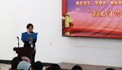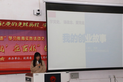 她认为,创业是一项充满挑战的事业,要创业首先要有创业的想法,根据自己的现有条件和能力,选择发展方向,行业要有一定的可持续发展性,尽量不要选择流行性项目,风险太大,还有就是所做的产品和服务,必须是能够帮助顾客解决问题,产品的品质和实用性第一,利润第二。接着她又从自己的创业史(如何创业、创业之路的艰难、父母老师给予的帮助)向同学们进行了详细的介绍。