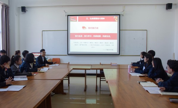 最后,孔老师强调要爱国爱党,要努力学习,热爱生活,把每一件平凡的事情做好就是不平凡。孔老师还提出希望各班团支部在生活和班级中秉着服务同学的原则积极关心同学,帮助同学,共同进步。个人的成长进步中,少不了祖国的护佑培养;祖国的复兴进程里,刻印着每一个中国人的汗水。未来的日子里,我们不仅要为祖国放声歌唱,更要做新时代的追梦人,为创造祖国光辉灿烂的明天添砖加瓦。