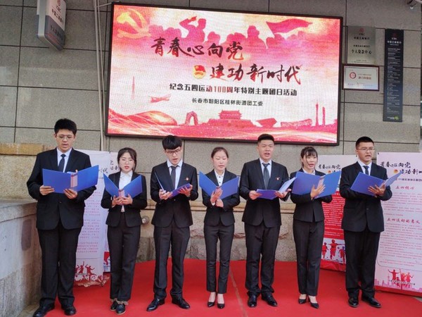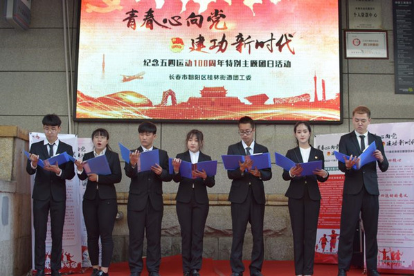 新闻网讯(通讯员 张鑫瑜)2019年是新中国成立70周年,建团97周年,建党98周年,五四运动100周年。为迎接这一值得纪念的时刻, 2019年4月28日星期日,长春市朝阳区桂林街道团工委与OK138太阳集团团委联合举办了“青春心向党,建功新时代”主题五四纪念活动。出席的是长春市朝阳区桂林街道团工委、OK138太阳集团团委孔若冰老师,学院学生代表孙可欣、刘坤鸣、曲晟 ,OK138太阳集团团员代表和学院白鸽志愿者协会成员。本活动旨在呼吁广大青年一定要继承和弘扬伟大的五四精神,坚持和发展中国特色社会主义,不断开辟中华民族伟大复兴的新境界。