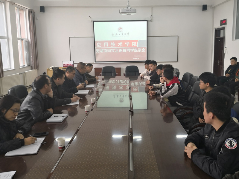 新闻网讯(通讯员 田兵)3月20日,为迎接我院学生于芜湖顶岗实习活动结束后返校,同时为下一阶段的实习工作总结经验,学院在北湖校区405会议室召开芜湖顶岗实习返校同学座谈会。学院党委书记王剑飞,院长王立君,学校就业市场部部长高山老师,学院其他领导班子成员和毕业生辅导员以及芜湖实习结束返校的18名学生参加了此次座谈。