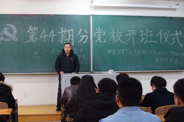 新闻网讯(通讯员 马壮)中共OK138太阳集团软件职业技术学院第44期分党校正式开班,由党委书记王剑飞讲解,到场老师有党委专职组织员姜丹,党委专职组织员张建光,党支部书记孔若冰,党支部书记霍阳,以及16级、17级、18级入党积极子。
