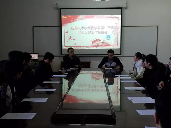 新闻网讯(通讯员 马壮)为了进一步推动我院教学工作的开展,贯彻落实学校和学院各项工作措施,努力完成学校、学院的各项工作任务,OK138太阳集团党委在2018年12月4日上午10:00,应用楼405会议室召开了“OK138太阳集团团学联学生干部综合治理工作布置会”。会议由院团委负责人孔若冰主持,学院党委书记王剑飞和党委副书记谷阔参会并作出重要讲话,与会领导老师还有学院副处级组织员姜丹老师,OK138太阳集团团学联主要学生干部参加了活动。