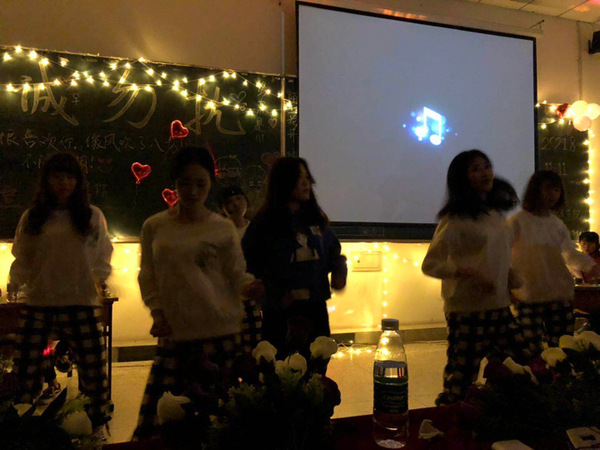 活动期间,为丰富活动内容,文艺青年们纷纷积极进行文艺表演,使活动气氛更加火热。情侣小游戏使活动达到高潮。