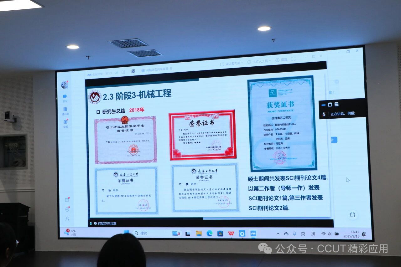 分享中,何猛回溯求学路:专科时锚定“专升本”目标,本科凭优异成绩考入目标专业、逐梦机器人设计并获国奖,硕士叩开科研大门获“挑战杯”国奖,博士阶段扛压攻坚完成学业。工作后,他在教学与科研领域双丰收,主持项目、培养研究生,持续产出高质量成果。