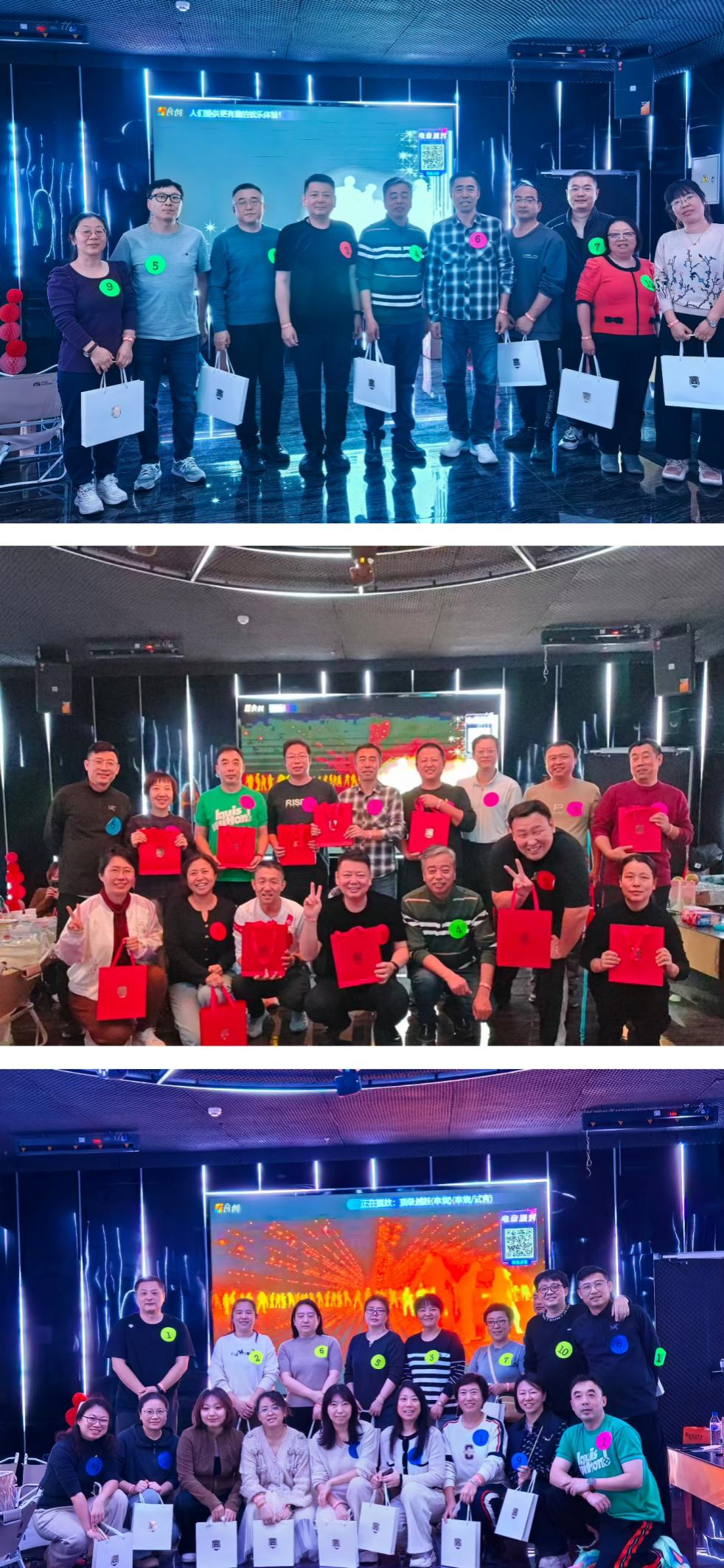 联欢开场,率先登场的是集体竞赛团体一等奖的队员们,他们带来了一段活力十足的团体舞蹈:伴随着轻快的音乐,队员们精神饱满,动作整齐划一,时而舒展手臂,时而踏步跳跃,将运动后的朝气展现得淋漓尽致,台下掌声与叫好声接连不断;紧接着的红歌对唱环节更显热血,《歌唱祖国》《团结就是力量》等经典旋律响起,不少教职工主动起身,或走上台前领唱,或在座位上跟着哼唱,嘹亮的歌声里满是赤诚与激情;最动人的当属收尾的集体合唱,当《朋友》的温柔旋律流淌,再到《真心英雄》的励志曲调响起,无论是站在前排的年轻教师,还是坐在休闲区的年长教职工,都不约而同地跟着轻打节拍、放声歌唱。熟悉的歌词、真挚的旋律交织在灯光下,有人笑着与身边同事对视,有人轻轻拍着同伴的肩膀,无需过多言语,这份在并肩参与中沉淀的情谊,便在歌声里静静升温。