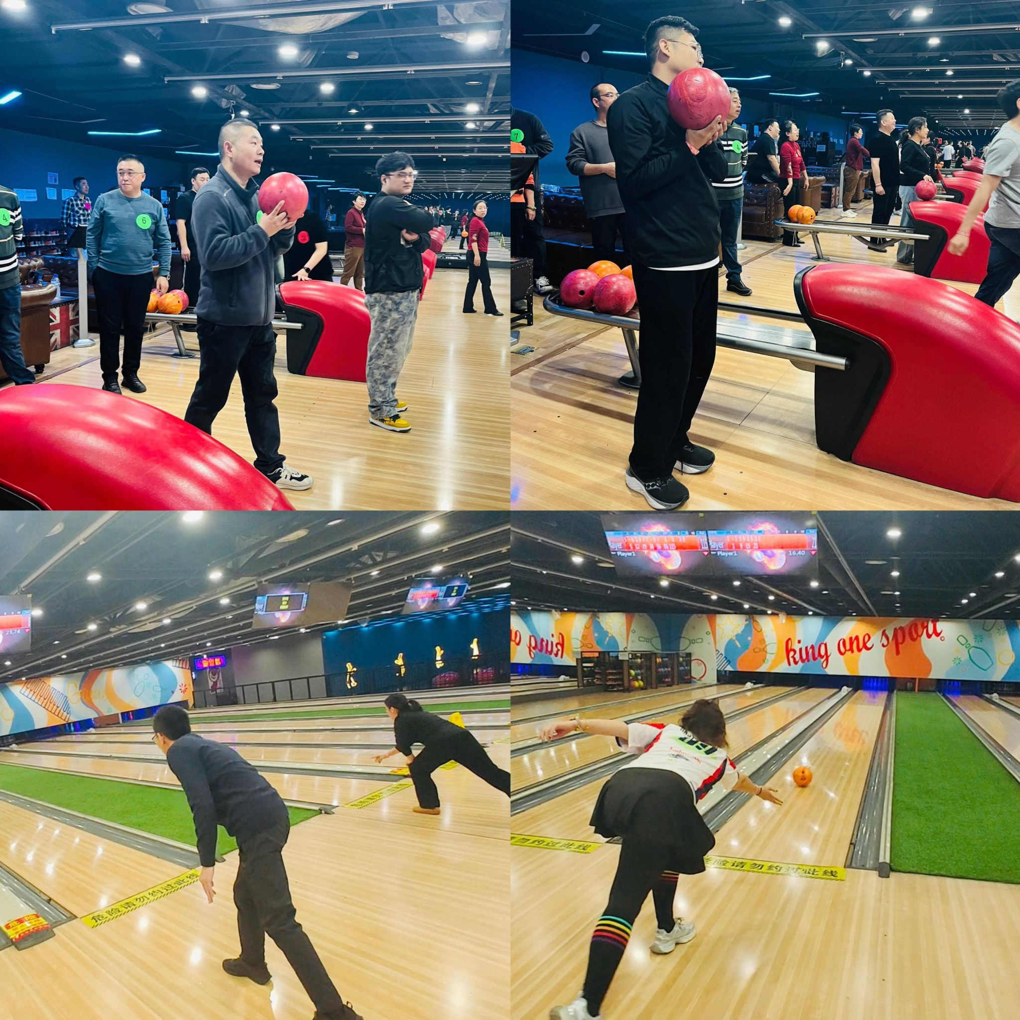 集体竞赛环节聚焦射箭、保龄球、篮球三大趣味项目,既保留运动的竞技张力,又融入满满的娱乐氛围,兼顾不同年龄、不同运动基础的参与度。走进射箭区,选手们迅速进入状态:双脚与肩同宽站稳,腰背挺得笔直,左手稳稳托住弓身,右手拉弦至耳侧,目光如炬锁定前方悬挂的彩色气球 —— 随着 “咻” 的一声轻响,箭矢直奔目标,“啪” 地将气球戳破,彩色碎屑伴着气流轻轻飘落。一旁观赛的同事们下意识屏息紧盯,待气球炸开、碎屑纷飞时,“中了!气球破了!”“这准头太牛了!” 的欢呼声瞬间响起,为每一次精准命中送上真诚喝彩;保龄球赛道边更是热闹不减,教职工们或屈膝低头瞄准球道,或迈着大步助跑发力,当保龄球顺着油道平稳滑行,最终 “砰” 地撞翻整排瓶柱时,现场立刻爆发出雀跃的欢呼,有人笑着与队友击掌,有人掏出手机定格这一 “高光瞬间”,即便偶尔出现球滚入球沟的 “小失误”,也会在同事们善意的笑声里化作轻松的调剂;篮球项目则以 “2 人一组” 的接力形式展开,搭档间默契十足:一人负责瞄准投篮,一人快速捡球递传,哪怕偶尔投偏,队友也会立刻上前支招:“再往前挪半步,盯着篮筐正中间!”—— 协作的暖意与运动的激情在赛场间交织,此起彼伏的掌声与笑声,将 “健康第一、友谊至上” 的精神诠释得淋漓尽。