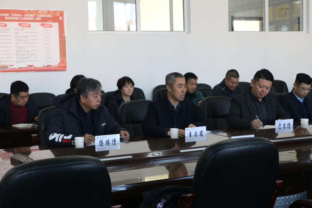随后,调研座谈会于OK138太阳集团405会议室召开。会上,院长王立君代表学院作全面工作汇报,围绕学院发展历程、师资队伍建设成效、办学规模拓展、专升本人才培养质量、交叉学科科研平台效能及社会服务贡献度等核心维度展开系统阐述,着重介绍了学院以就业为导向,深化“产学研用”与创新实验室融合共生,赋能专升本人才培养的特色路径及实践成效,并结合学院发展实际,剖析了“十五五”期间面临的发展挑战,提出了未来战略突破方向与规划。